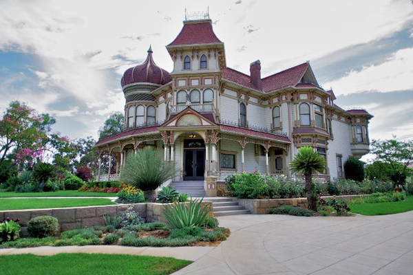 The magnificent Edwards Mansion was built on Cajon St in Redlands, California in 1890. Ready-made plans were purchased by Mr. James S. Edwards, pioneer citizen and citrus grower, to build the fourteen-room house. It took over one year to build the original salmon pink structure.