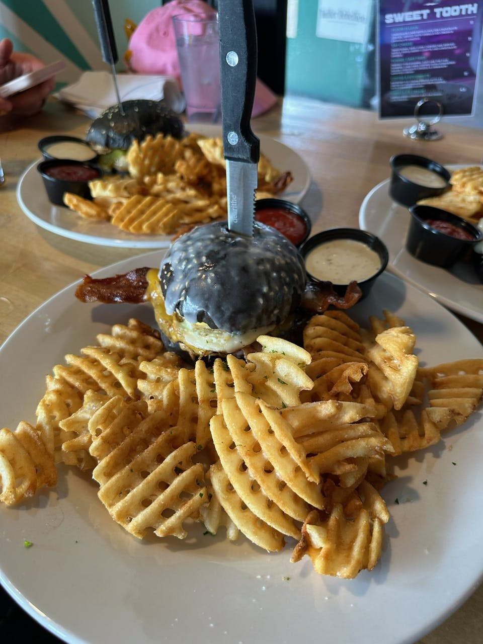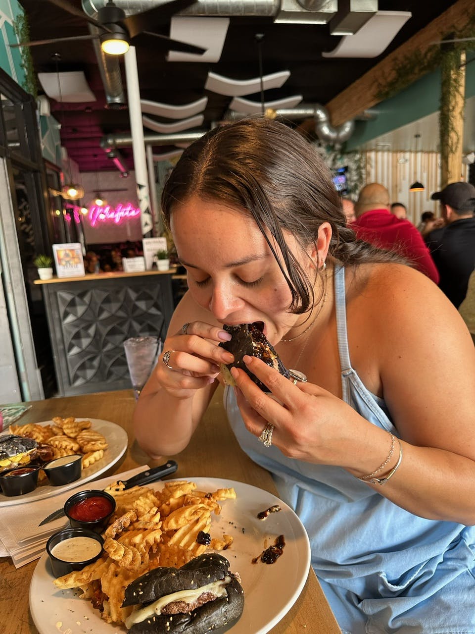 From paint and sips to trivia nights and even kids eating free on Wednesdays, Batter Rebellion is always cooking up something fun and exciting, and their menu pairs with the vibes perfectly. The burgers here are unapologetically over the top, each with a unique twist of its own. First on the menu, we tried the Black Sheep Burger, which is a local favorite. This 6 oz. Angus beef patty is layered with bacon jam, Monterey Jack cheese, a house-made onion ring, rebel sauce, and held together with a charcoal-infused brioche bun. It was also served with crispy waffle fries. It’s indulgence on a plate.