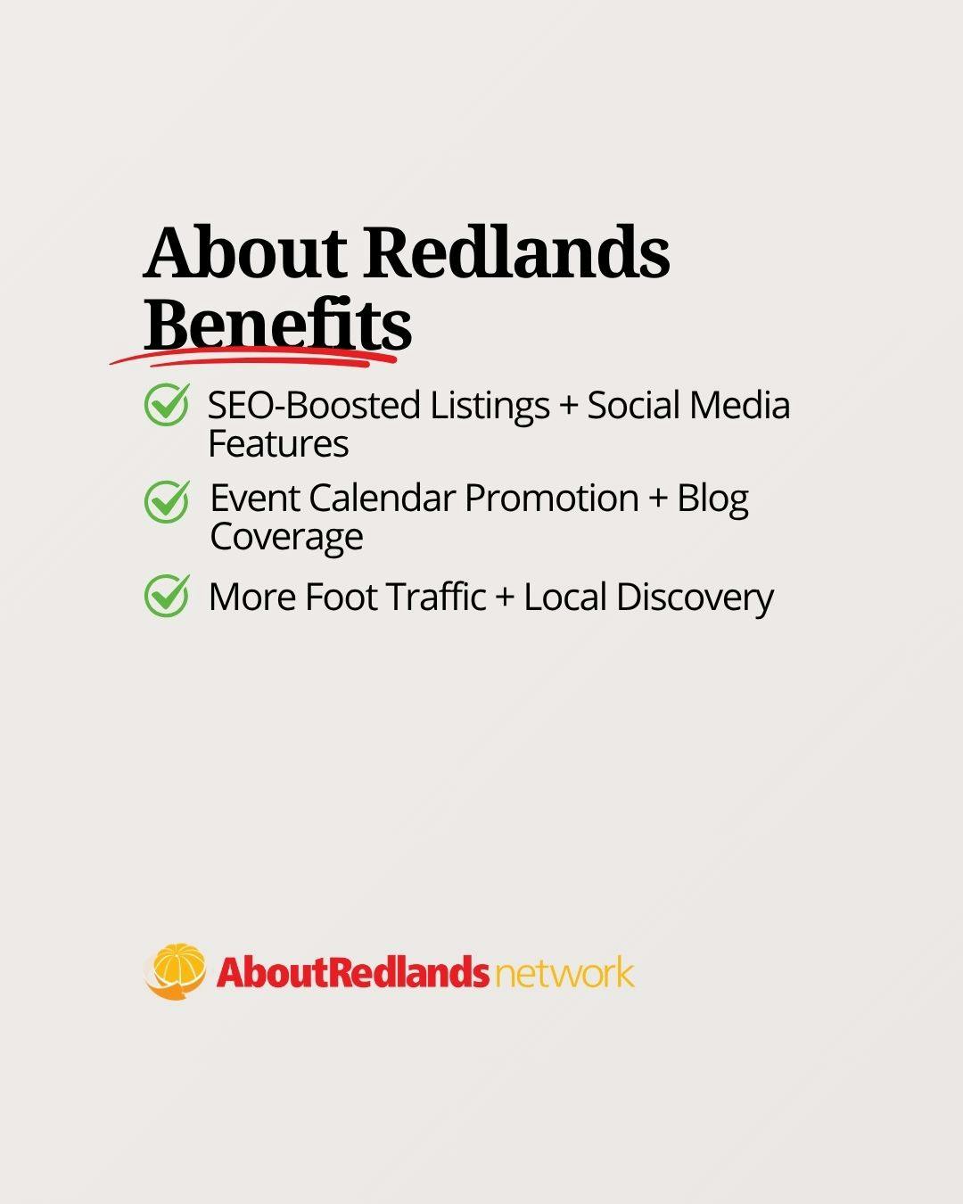 - Choose About Redlands for consumer marketing and visibility.