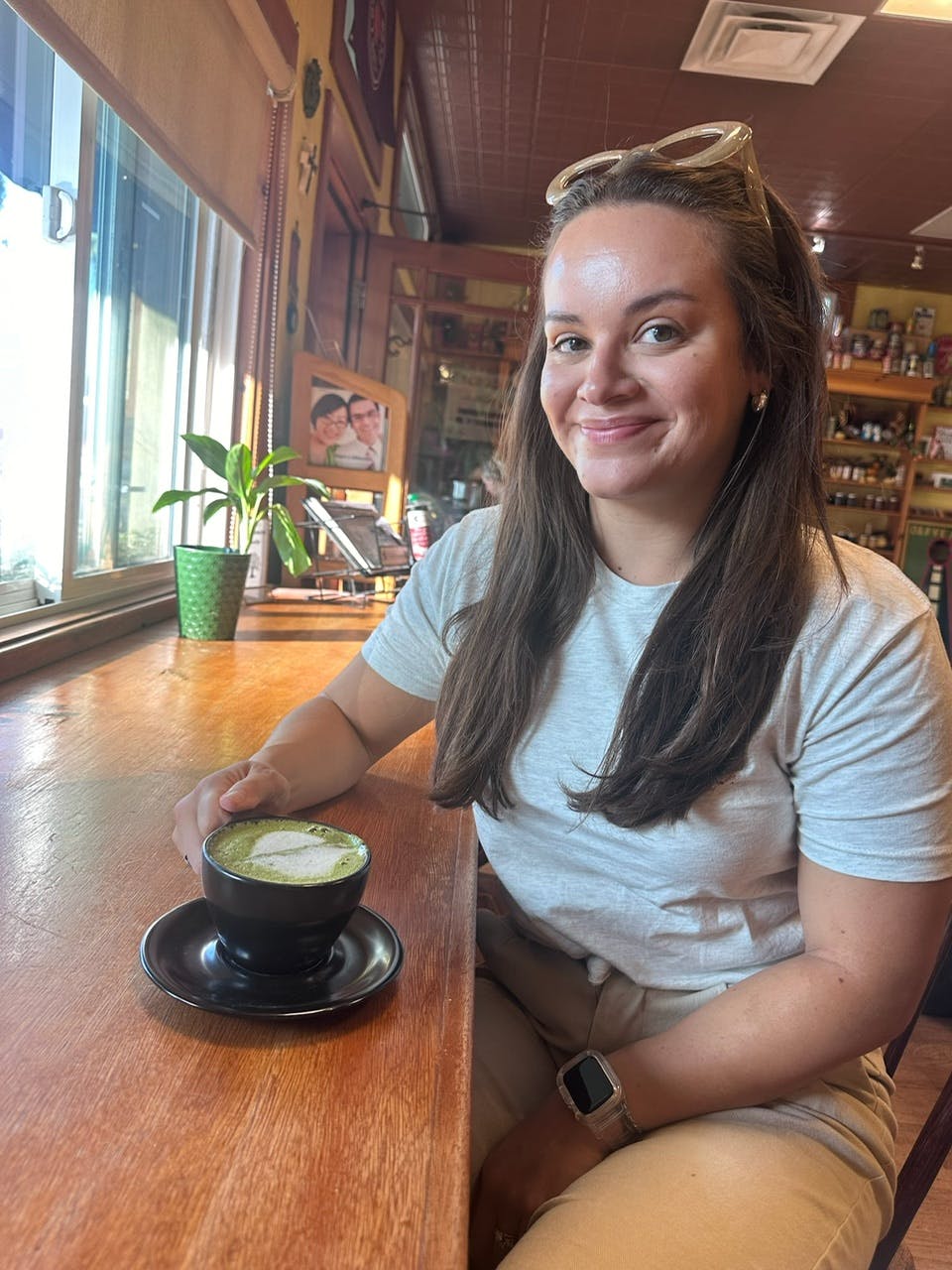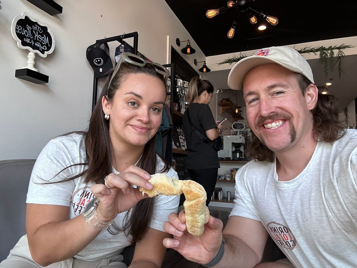 We nibbled on a handmade lingonberry and cheese pastry. Before we left, Gianna had to let us try their Plum Jam Puff Pastry, a recipe that was a passed-down favorite from their grandmother. It was so tasty, and we loved the sentiment behind it. Gianna’s favorite order is a classic cappuccino made with almond milk.