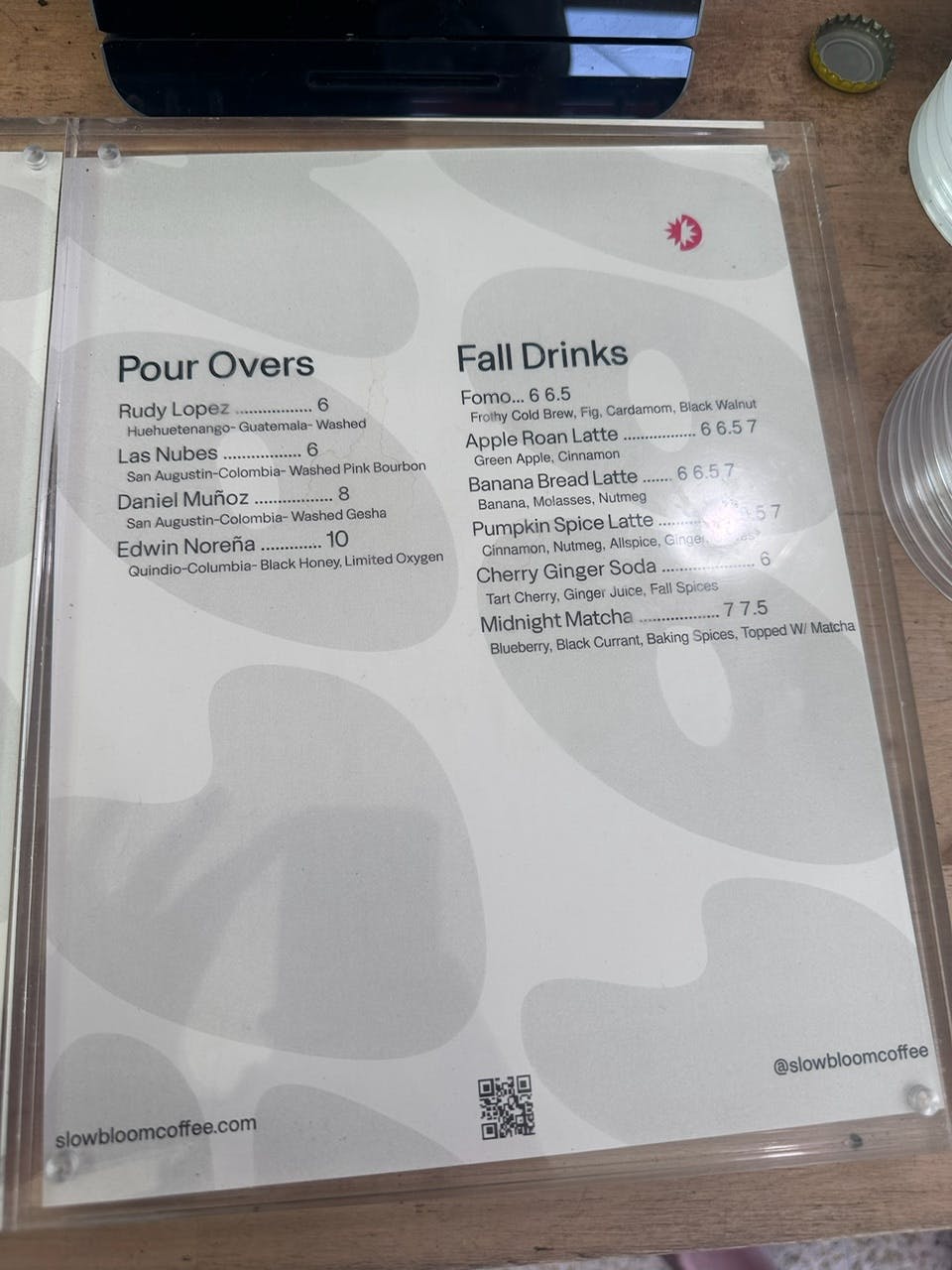 Slow Bloom is a coffee co-op that started doing pop-ups in 2020. They began in their current location about 2.5 years ago. What is unique about them is every employee equally owns a percentage of the company. There is no boss, and the knowledgeable and passionate baristas always keep things fair!