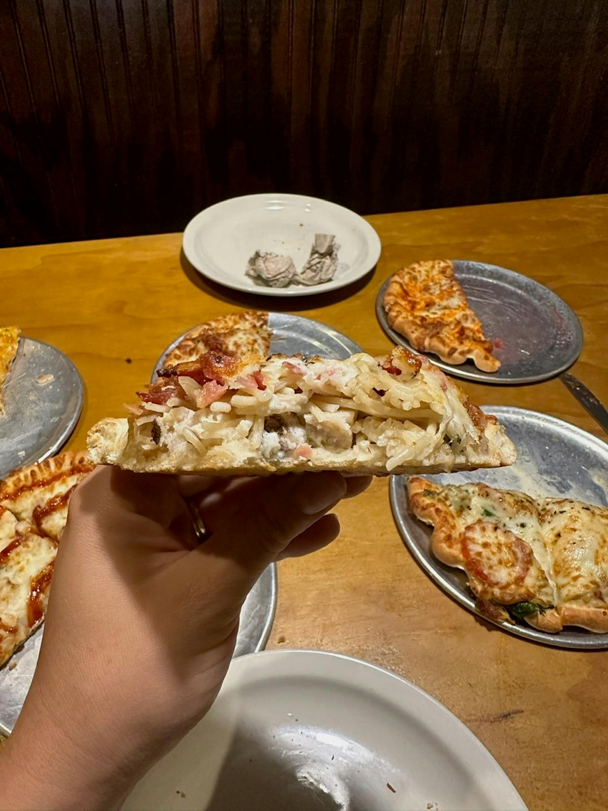 They have added a few new appetizer items like garlic bread, BBQ bacon bread, and Caprese Bread. We also got a pro tip from the bartender Joey — he suggested asking for “meat sauce” on the pizza instead of marinara to level up their classic pizzas.