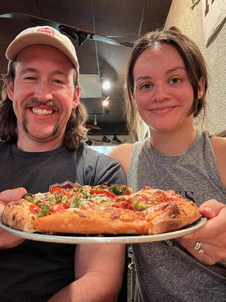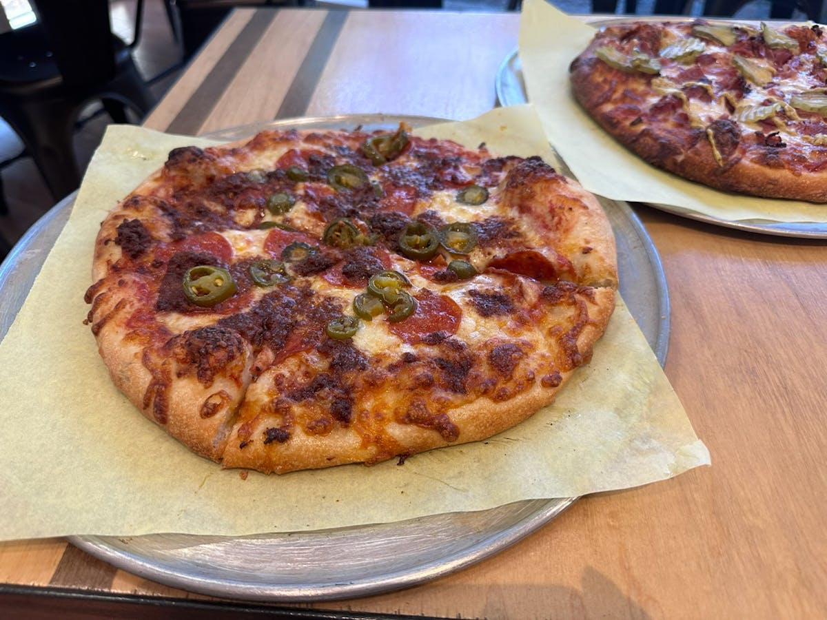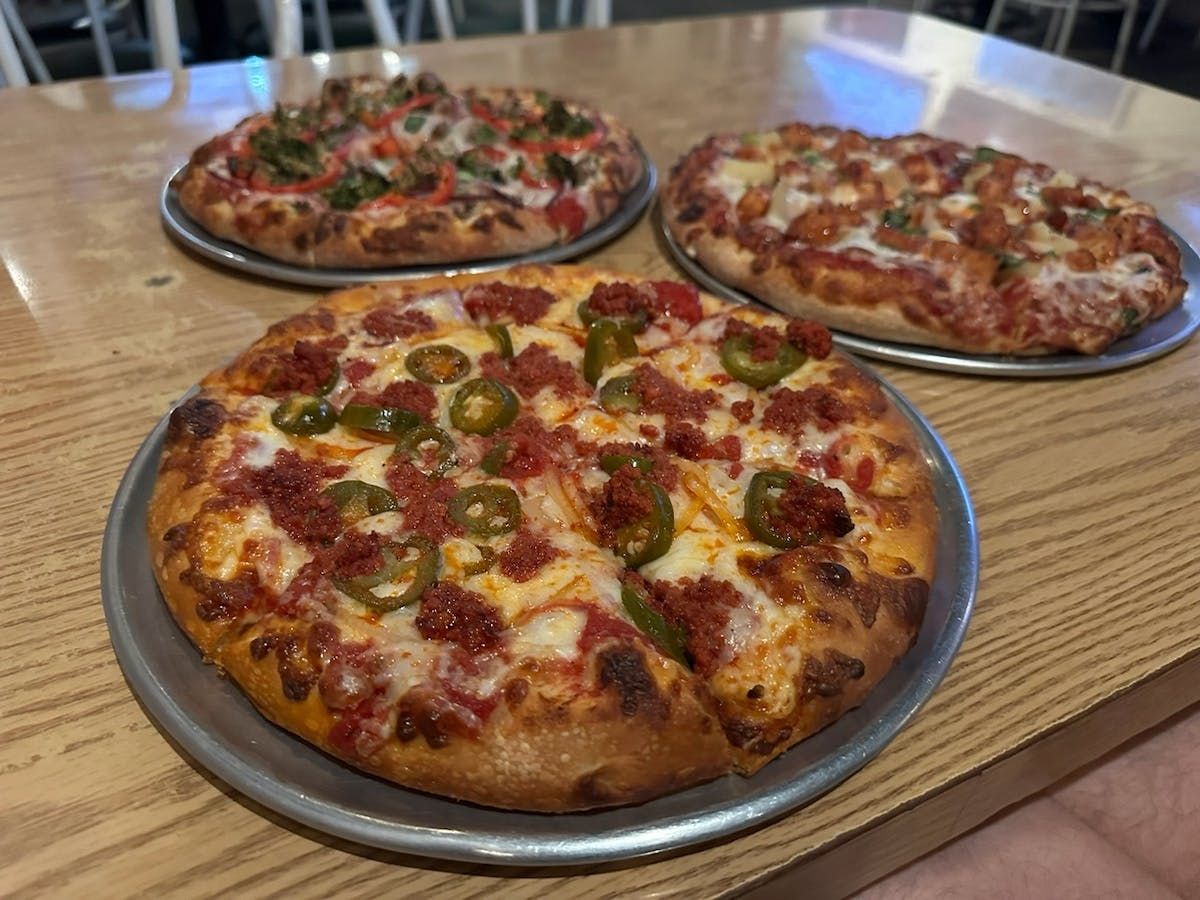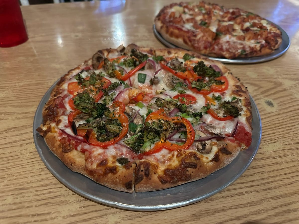 Additionally, Gourmet Pizza Shoppe can make a wide variety of vegan pizzas. Have your eyes on two different pies? Get the best of both worlds with the half-and-half option where you can get two different flavor combinations on one pie!