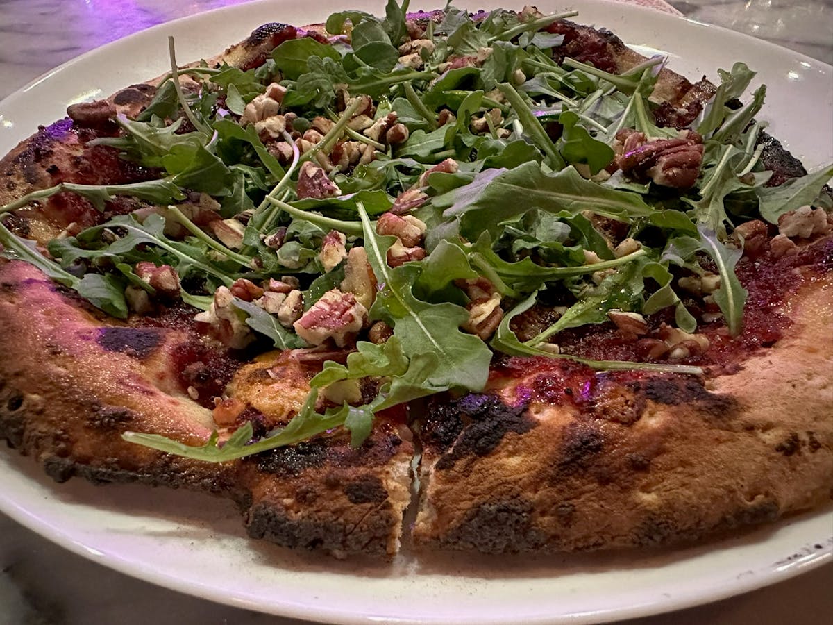 - Fall’a Lori (named after the owner) was the first pizza we tried. It had a base of cranberry spread, gorgonzola, crispy prosciutto, and pecans. It’s topped with fresh arugula. Most of the employees said that it reminded them of eating a peanut butter and jelly sandwich! That was true! This was fun.