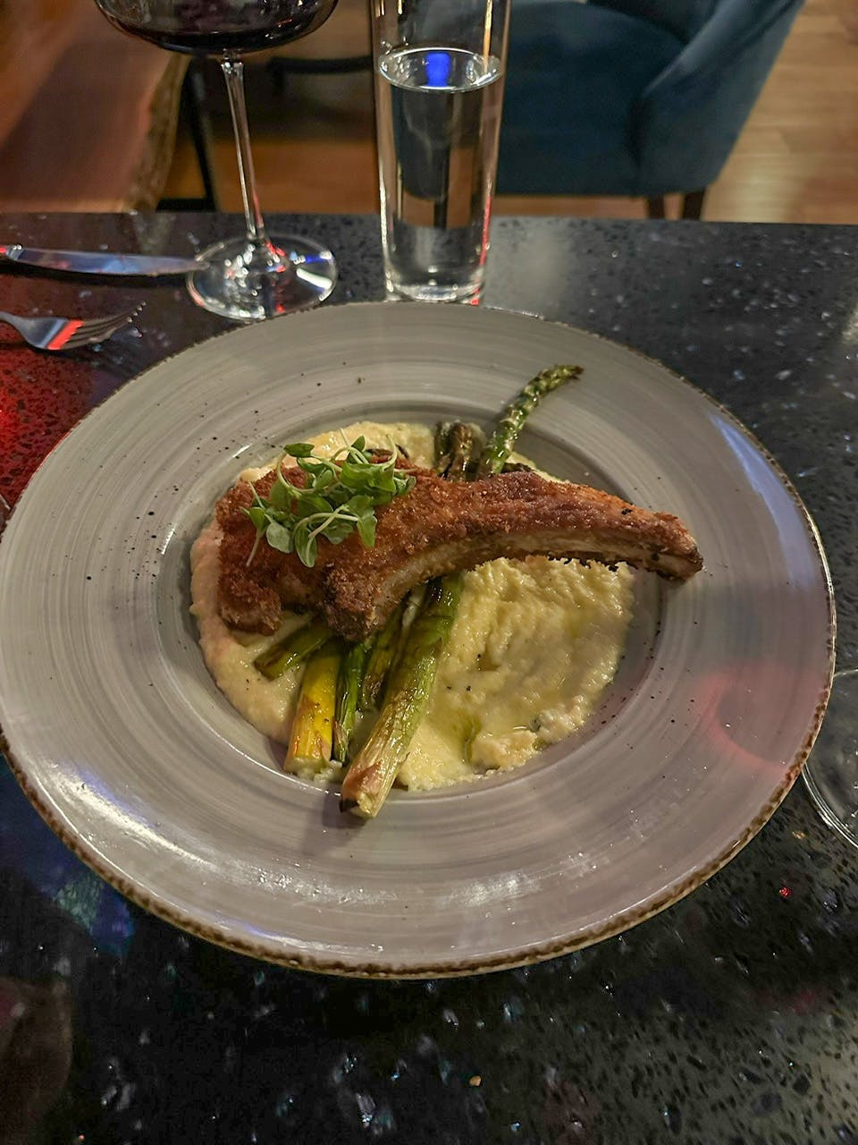 The servers were all so helpful and had great recommendations of their own. The most common recommendation was, of course, the pork chop. Our host and sommelier paired our Date Night Dinner with a beautiful French red blend that she was excited to try. Ian and I consider ourselves very new to the wine world. It was nice to have some notes and education from this certified wine sommelier.