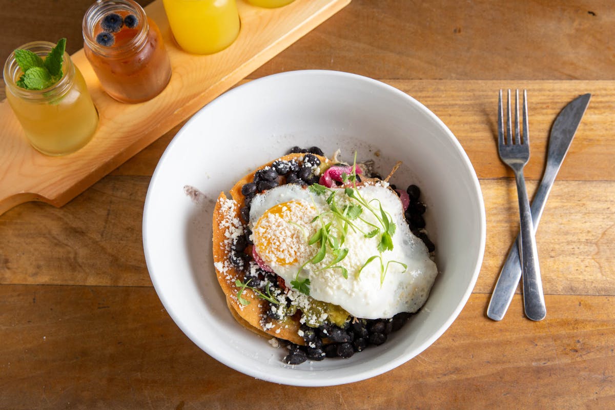 Hip and trendy, The State is often touted as a great spot for date night or a celebratory group gathering. But don’t overlook brunch on Saturdays and Sundays. The AM offerings include a morning-inspired cocktail list, plus a handful of sweet and savory plates. One of our favorites is the Machaca Burrito filled with short ribs, scrambled eggs, avocado purée, and black beans.