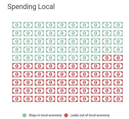 2. Money spent in a local business generates 3.5 times more wealth for the local economy compared to money spent in corporate chains.