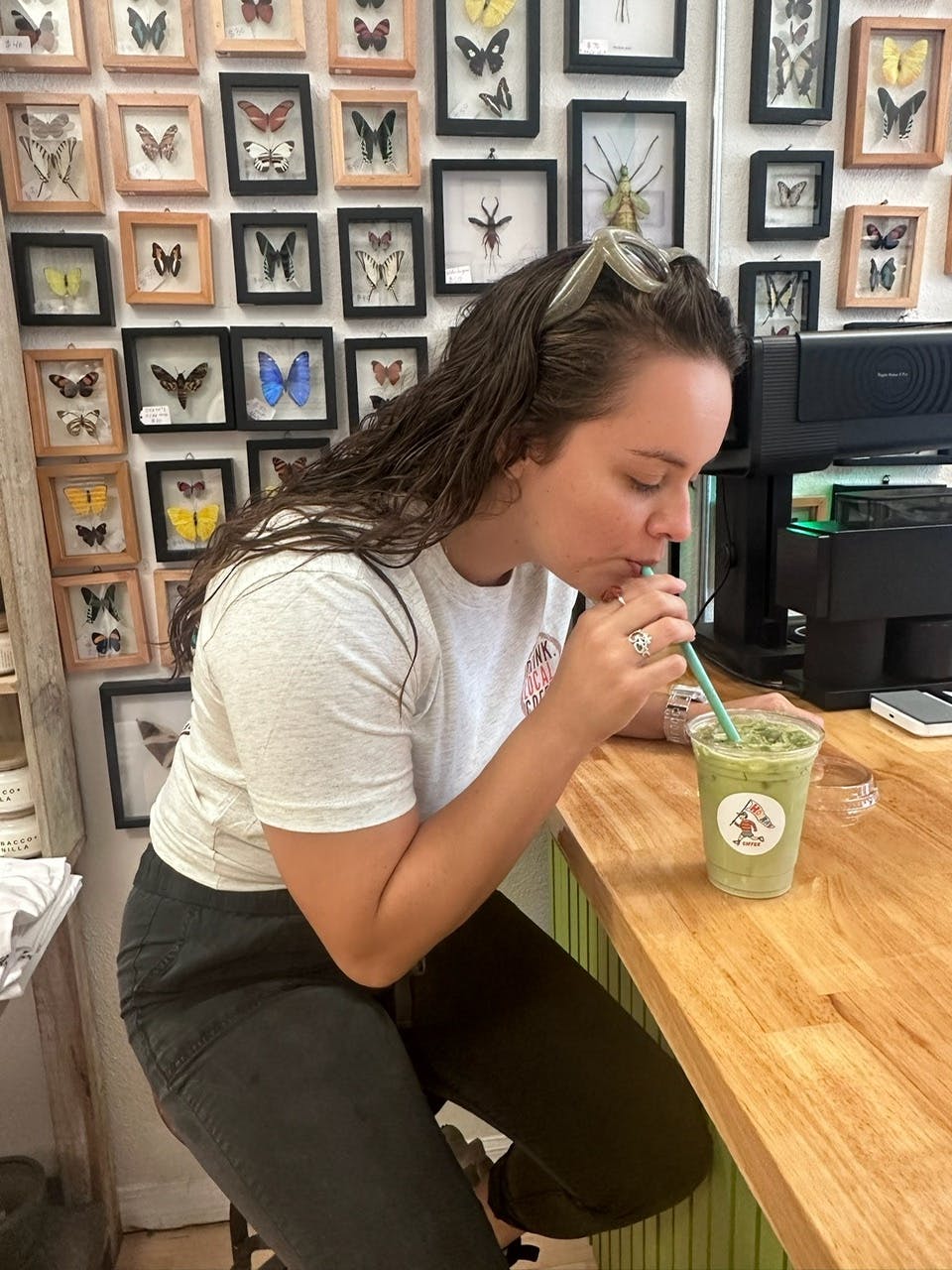 Our Order: Iced Midnight Matcha, and a classic pour-over with beans called Daniel Munos and washed with Colombian gesha.