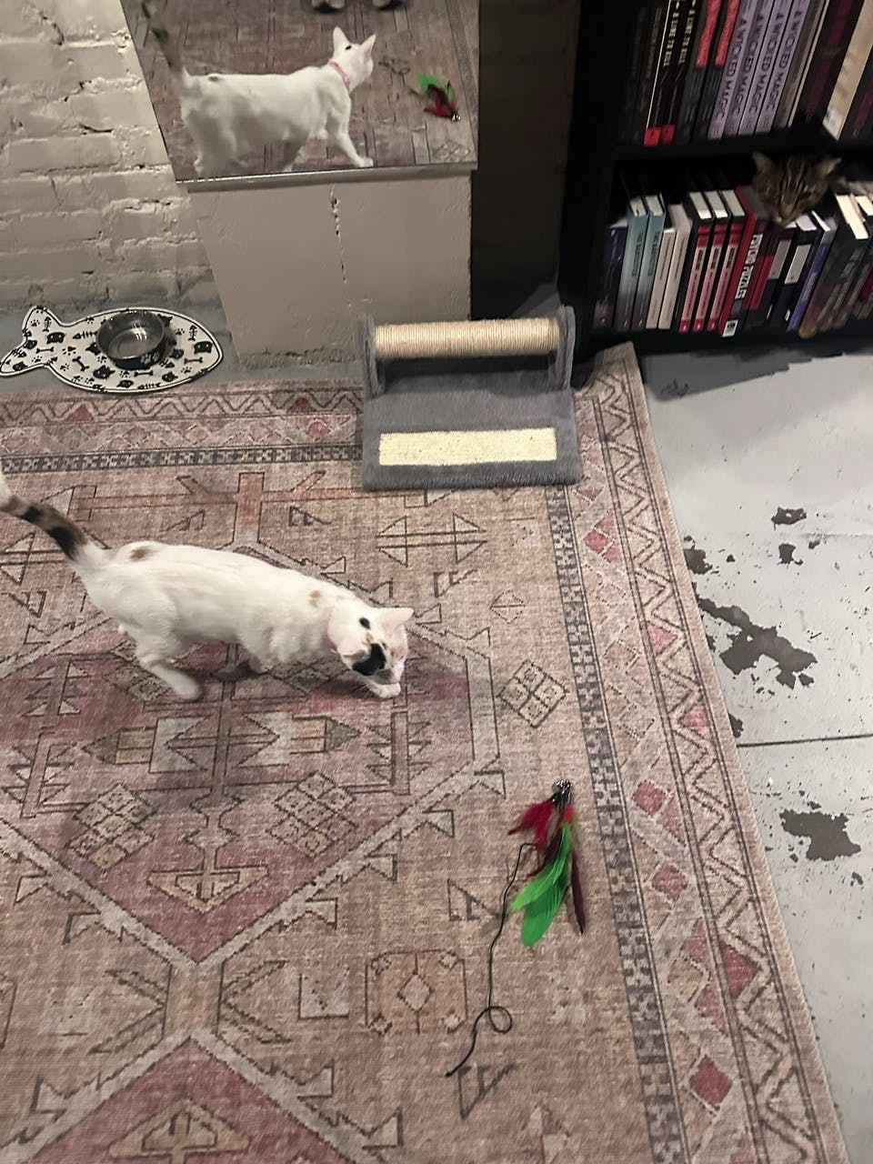 You’ll find a few classic pastries available to complement your drink order. The real stars of your visit are downstairs, though — the cats who live in the cat lounge! All cats in the lounge are adoptable, minus the shop cats Sugar, Spice, and their new addition, Sid!