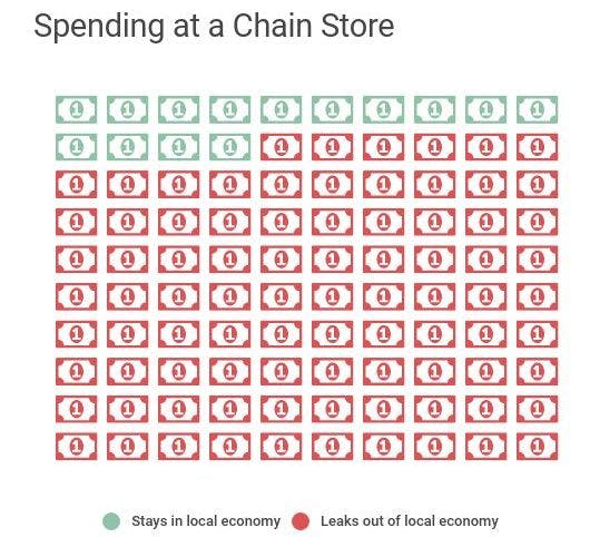 2. Money spent in a local business generates 3.5 times more wealth for the local economy compared to money spent in corporate chains.